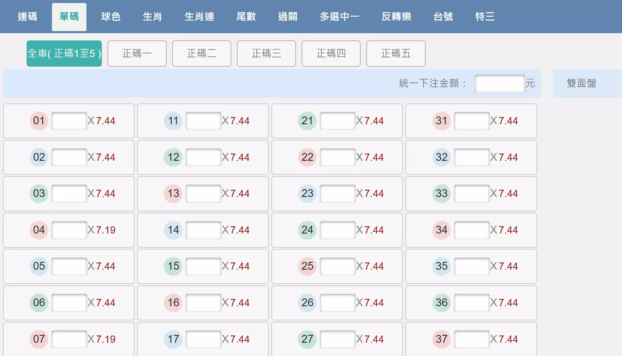 1顆號碼下注金額是74元